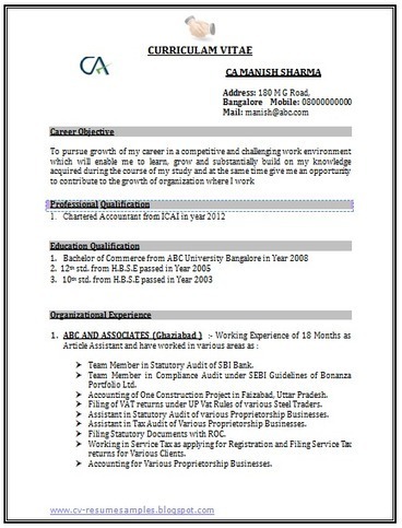 Free Download Resume Sample For Ca Fresher With Cover Letter 2