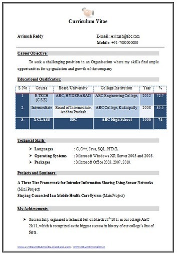 What Is The Latest Resume Format For A Btech Fresher Quora