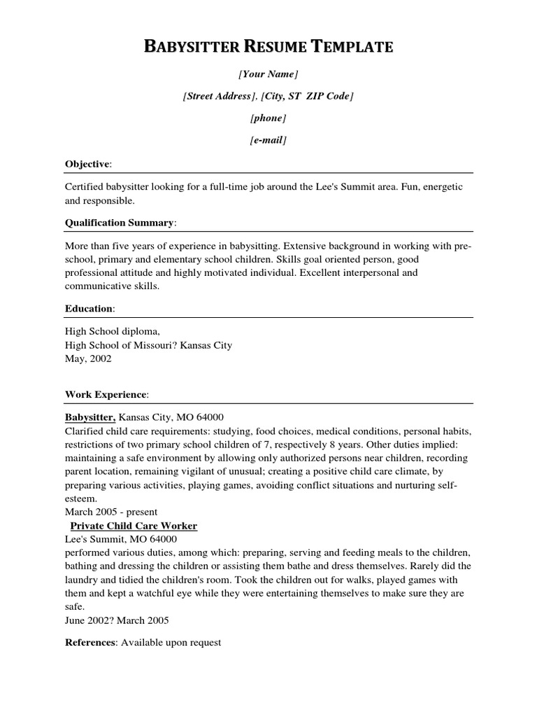 Babysitter Resume Template Babysitter Resume Resume Templates