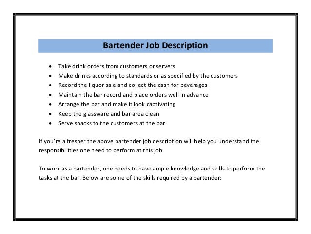 Bartenders Job Description For A Resume Profesional Resume Sample
