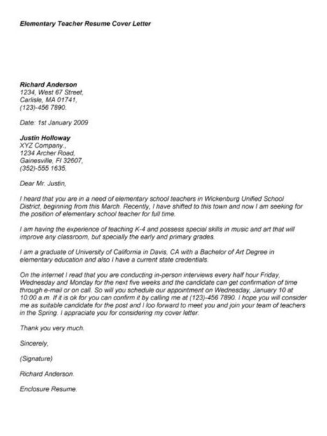 Elementary Teacher Cover Letter Sample Guide Resumecompanion