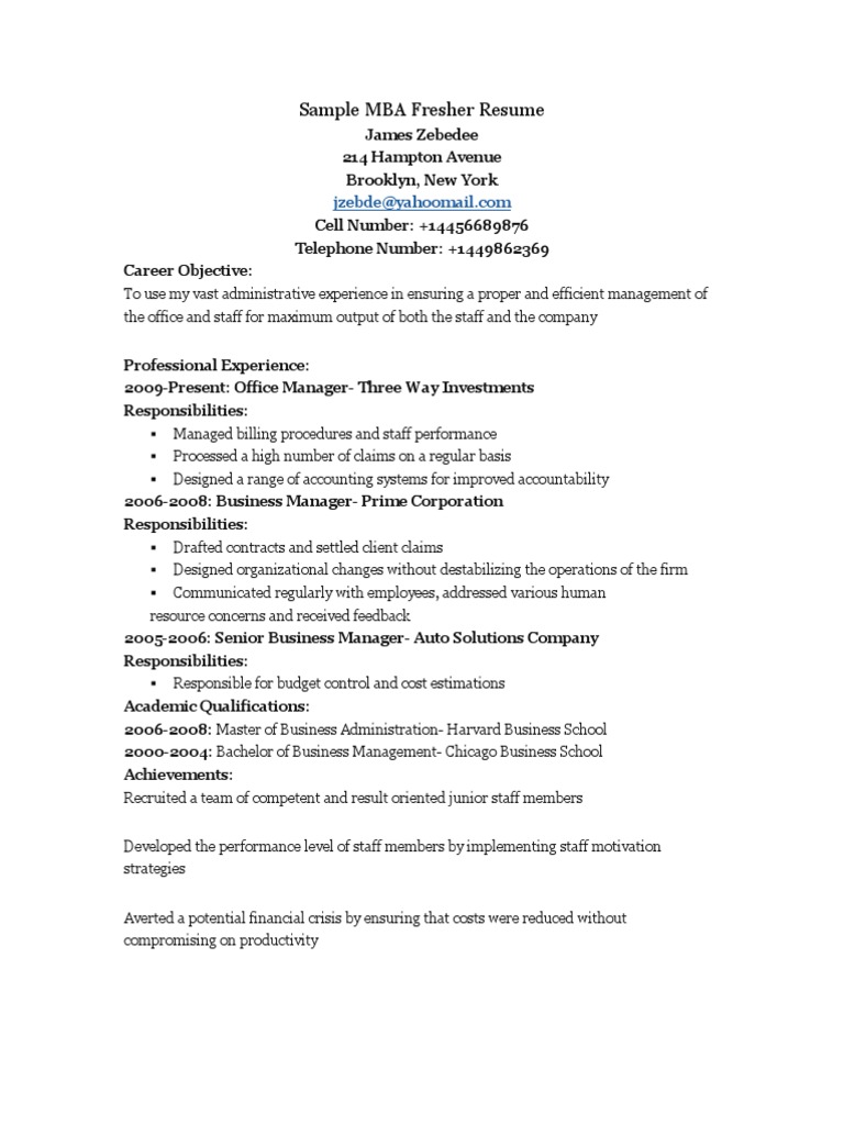 5 Mba Freshers Resume Samples Examples Download Now Pdf