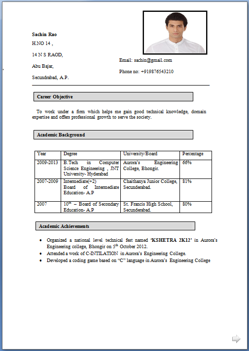 Undergraduate Job Resume Format Job Resume Bio Data For Marriage