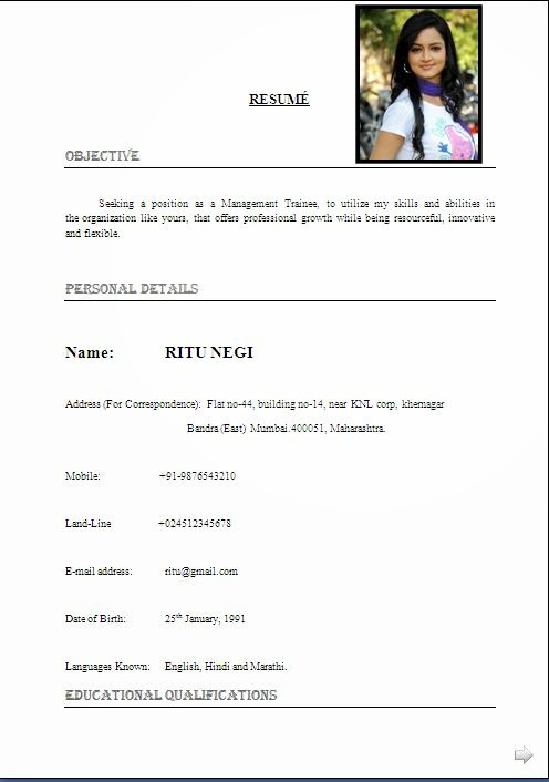 Sample Biodata Format Resume Hd Yahoo Image Search Results