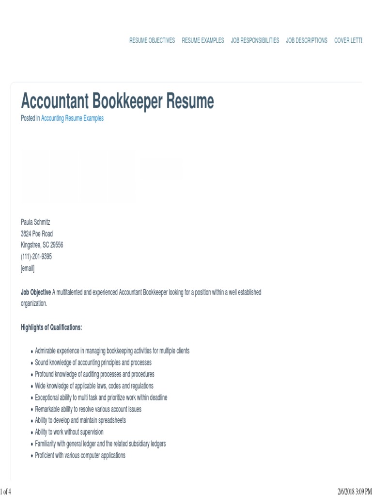Certified Bookkeeper Resume Pdfsimpli