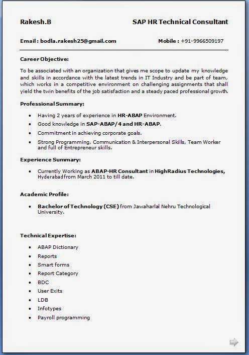 Business Objects Resume Format