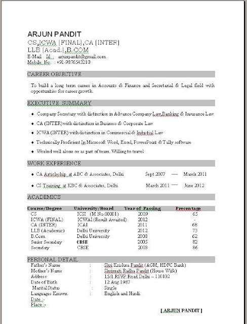 What Format Should My Resume Be In Sample Resume Curriculum Vitae