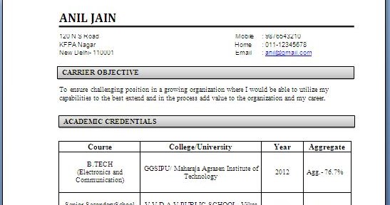 3 Page Resume Format For Freshers Resume Format For Freshers