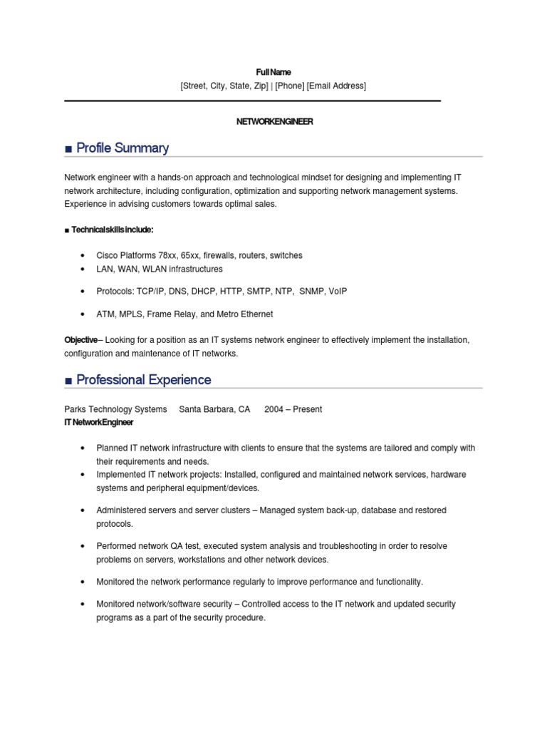 Resume Format For Network Engineer Network Engineer Resume Sample