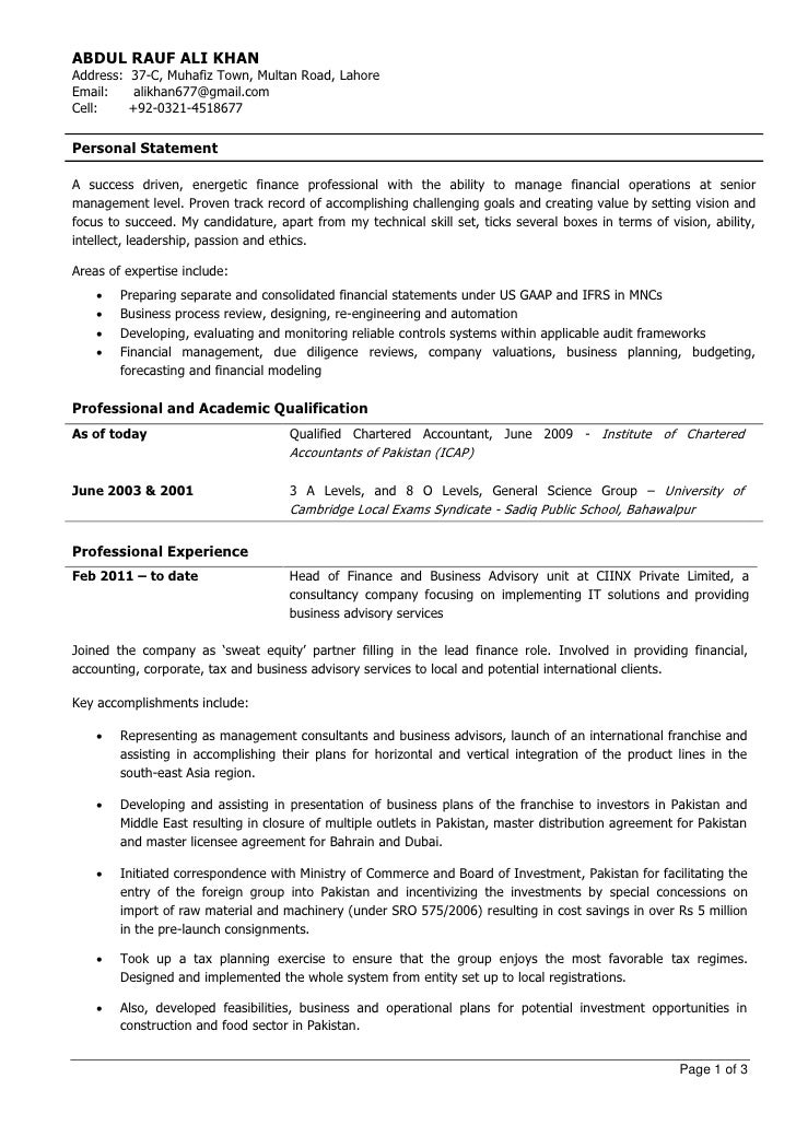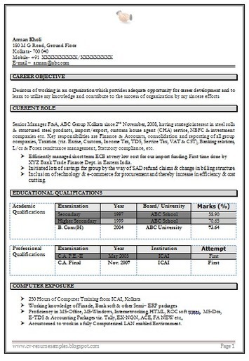 Good Cv Resume Sample For Experienced Chartered Accountant 2