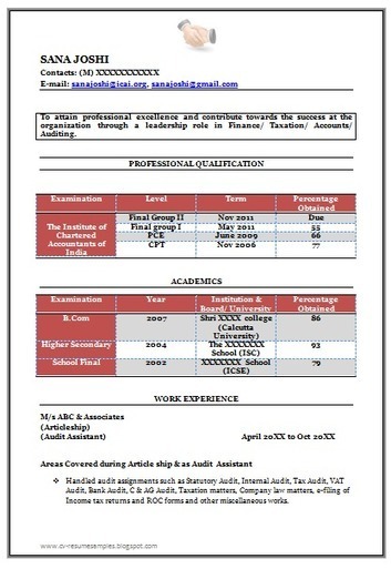 Chartered Accountant Ca Articleship Resume Sample Cognition