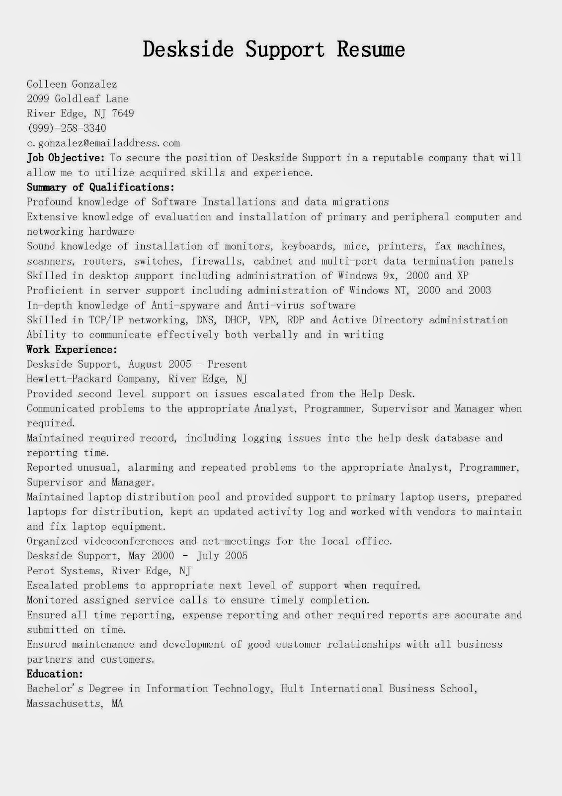 it asset management resume sample