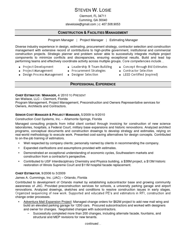 Construction Estimator Sample Resume Http Exampleresumecv Org Construction Estimator Sample Resume