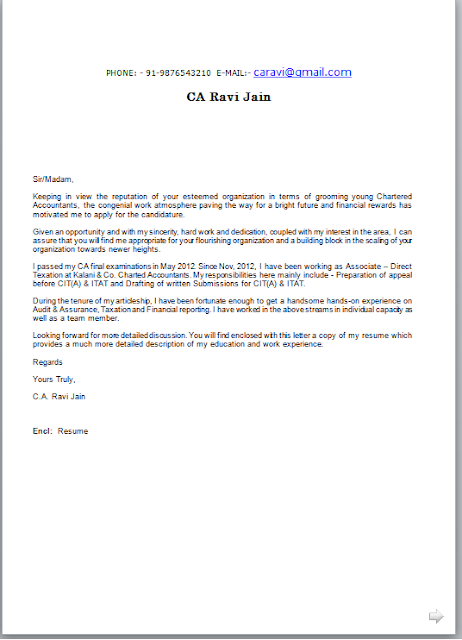 Cover Letter For Fresher Chartered Accountant Arca Dia