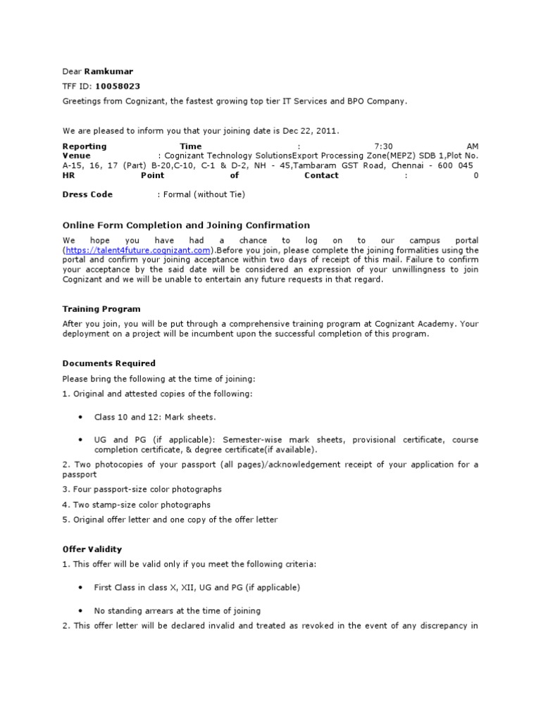 Cognizant Experience Certificate