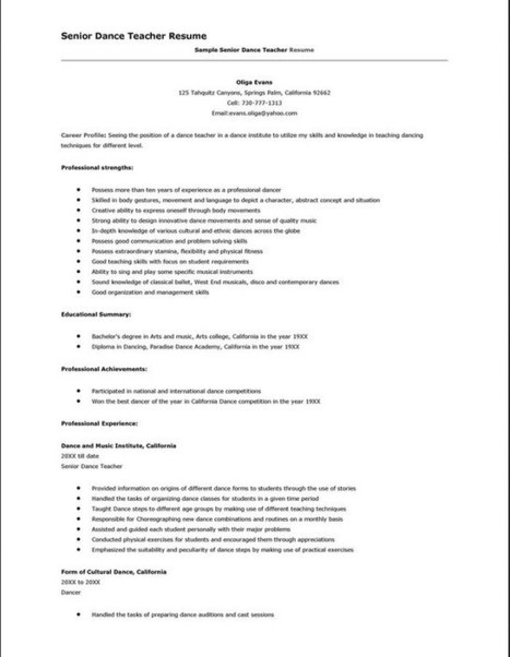The Best And Impressive Dance Resume Examples Collections Dance Resume Resume Examples Teacher Resume Template