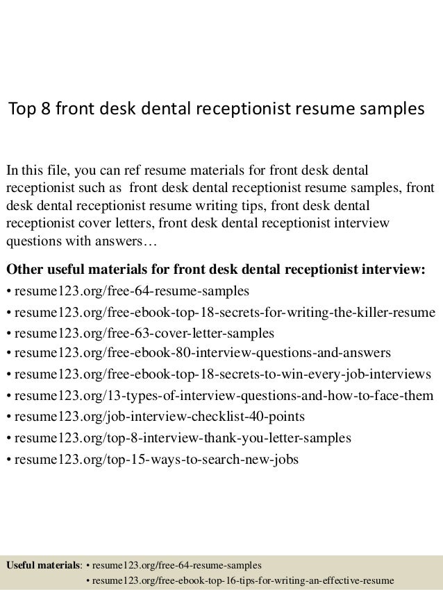 Top 8 Front Desk Dental Receptionist Resume Samples