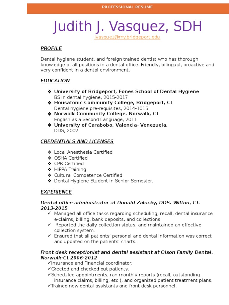 Sdh Short Resume 2017 Dentist Dental Hygienist
