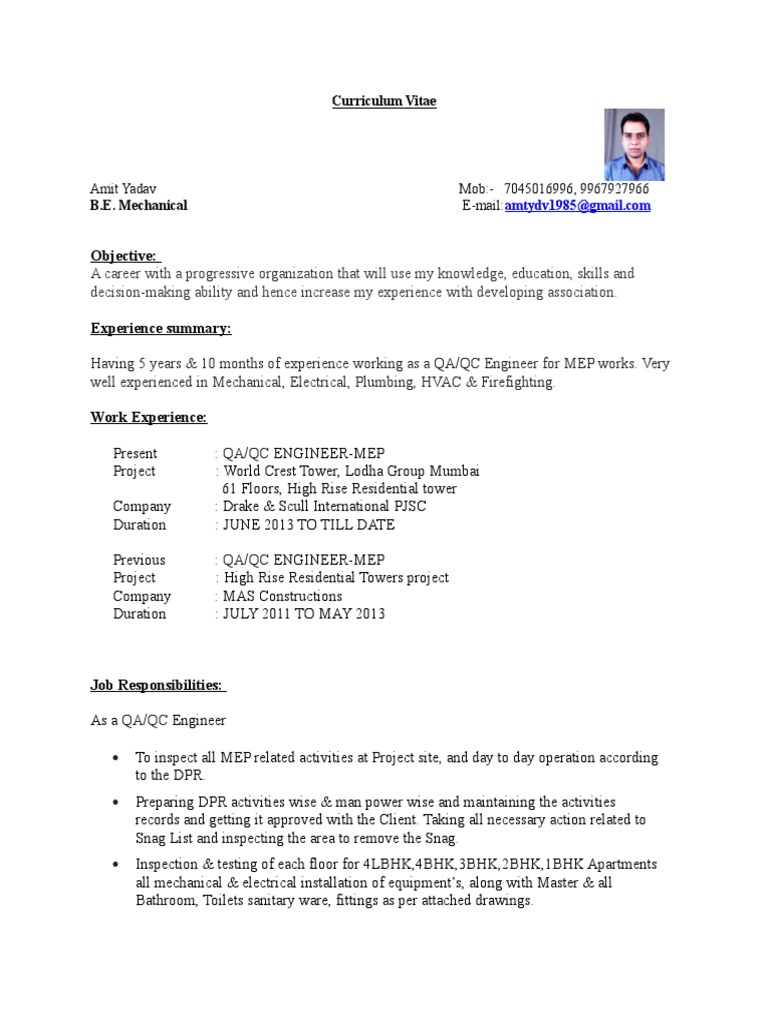 Cv Electrical Qa Qc Engineer Slideshare Sampleresume