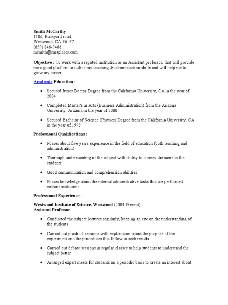 Sample Graduate Cv For Academic And Research Positions Wordvice