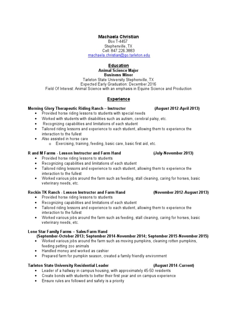 Machaela Christian Resume Horses Equestrianism