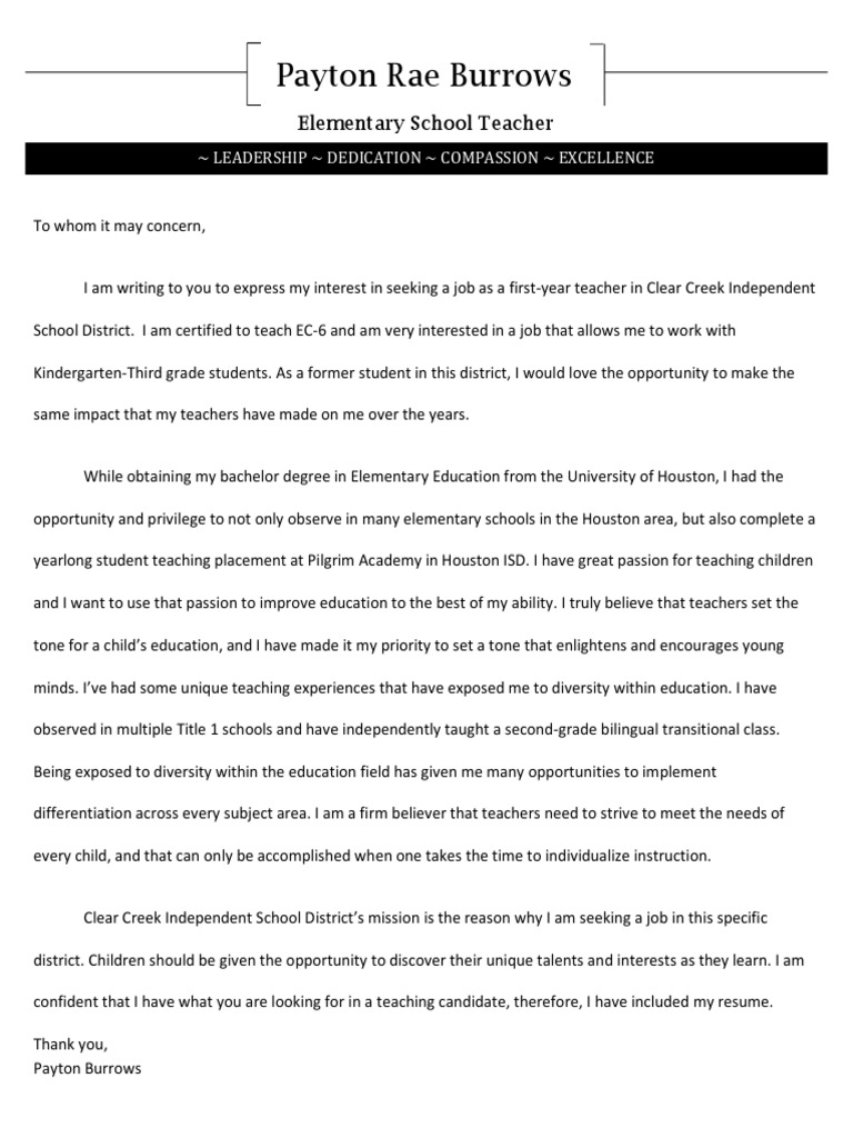 Cover Letter Of A Teacher