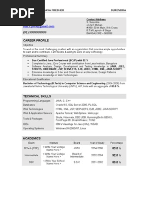 J2ee Fresher Resume Fresher Java J2ee Resume J2ee Fresher Resume