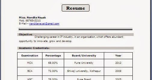 Fresher Resume Format Download In Ms Word Free Download