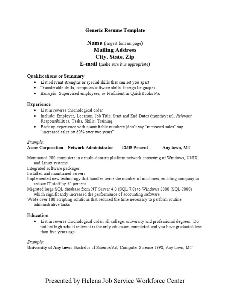 Fillable Online Generic Resume Template Fax Email Print Pdffiller