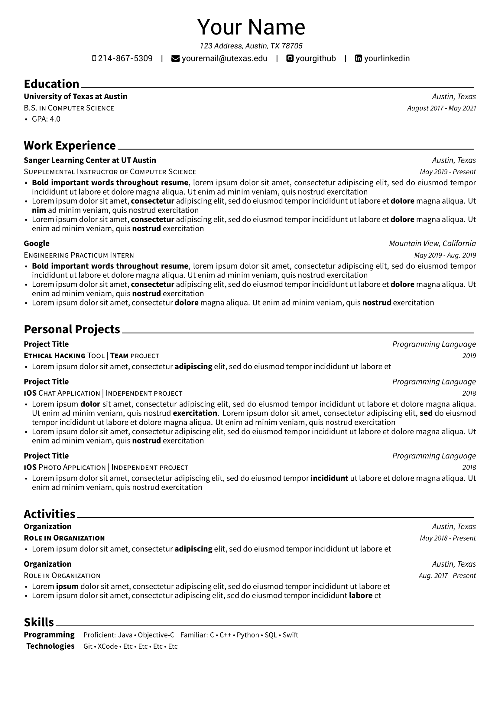 Best Engineer Resume Template Uses Latex By The Breakout List