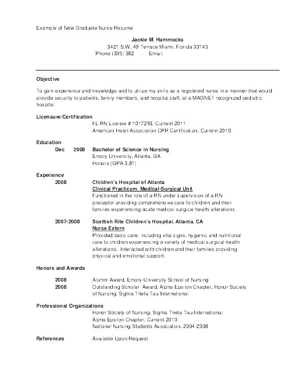 Nursing Resume Examples New Grad Sample New Graduate Nurse Resume