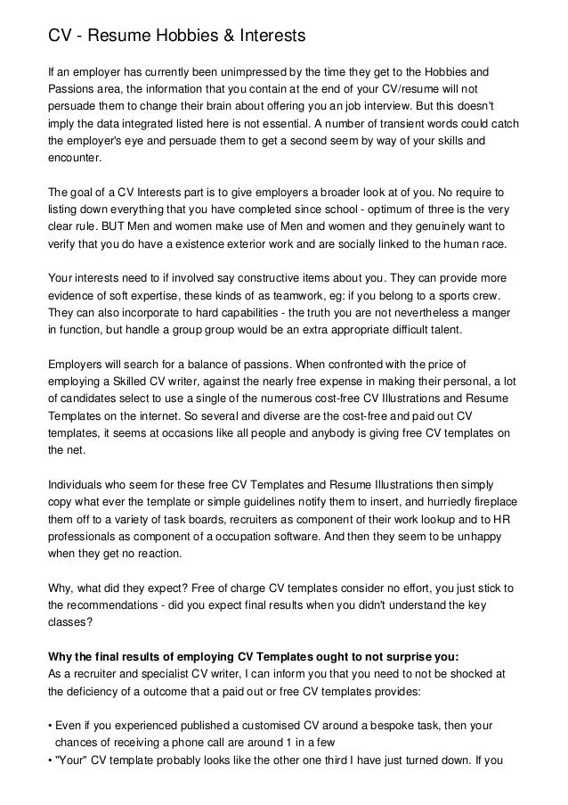 Hobbies In Resume Writing