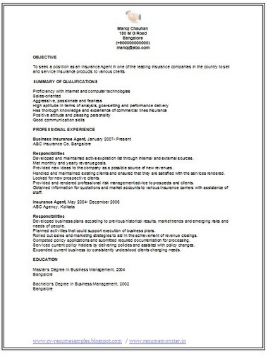 Insurance Agent Resume Objective Examples Resume Format For