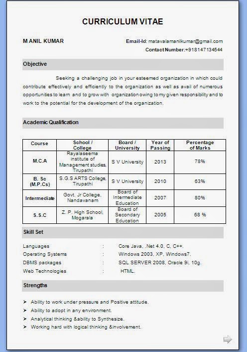 Resume Doc Format Free Download