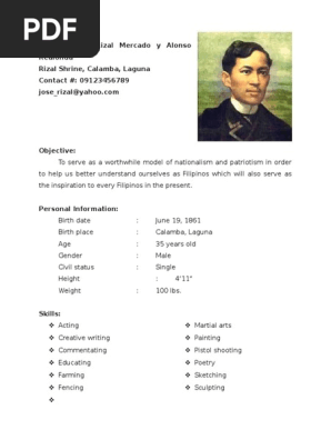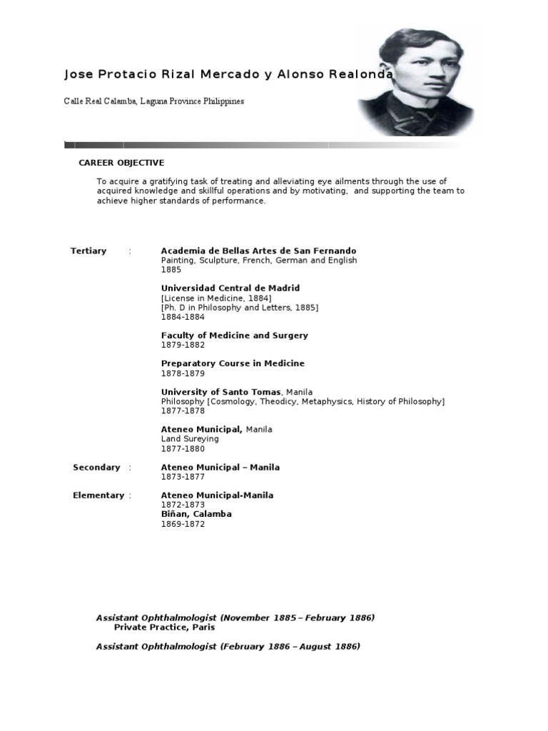 Resume Templates Jose Rizal Resume Resumetemplates Rizal Templates Resume Examples Resume Objective Examples