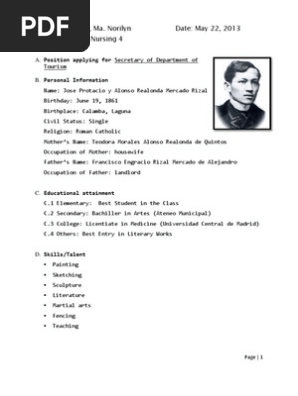 Resume Templates Jose Rizal Resume Resumetemplates Rizal Templates Resume Templates Jose Rizal Resume