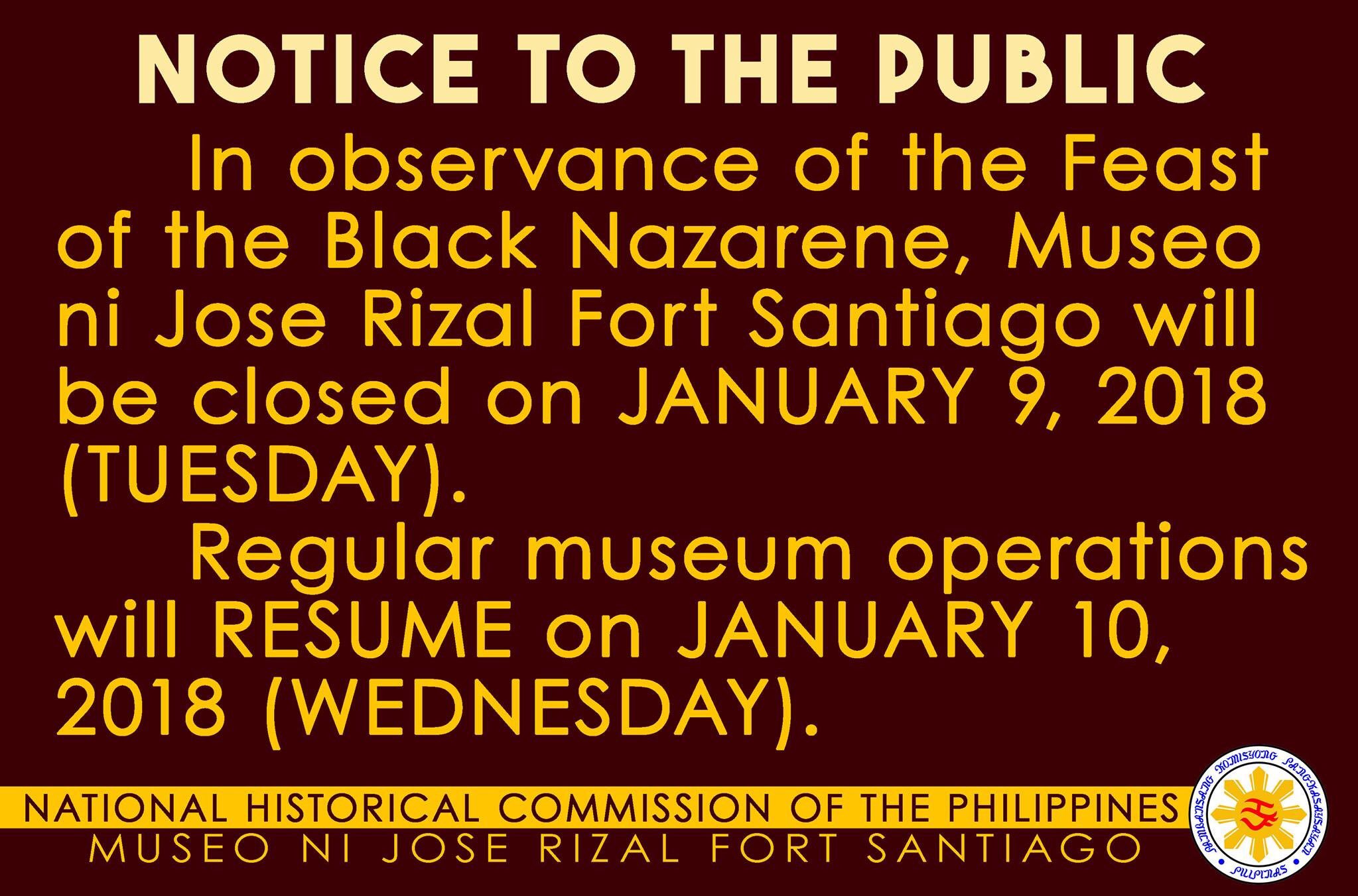 Intramuros Phl On Twitter Please Be Advised That Museo Ni Jose Rizal Fort Santiago Rizal Shrine Will Be Closed On