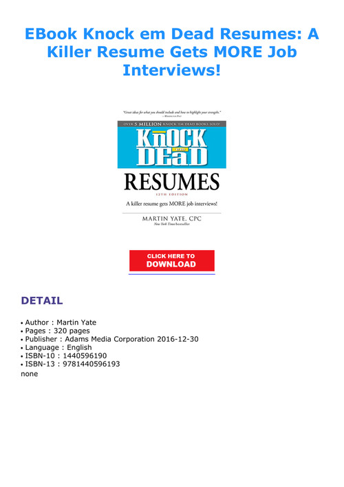 Download Martin Yate Knock Em Dead Resumes 11th Edition Pdf Text Images Music Video Glogster Edu