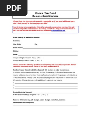 Knock Em Dead Resume Questionnaire Resume Resume Sample 5885
