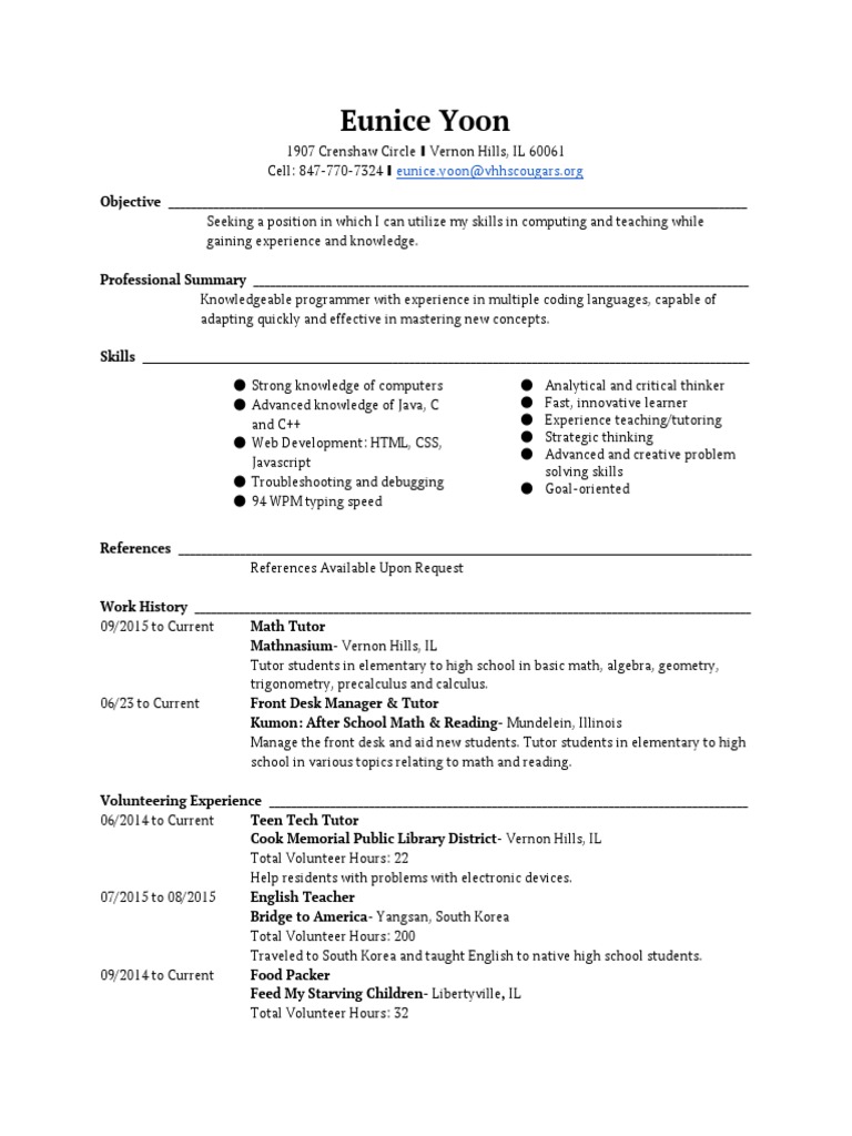 Volunteer Tutor Resume Example Kumon Math And Reading Center