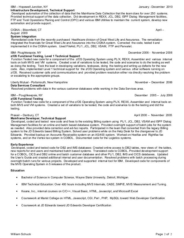 Mainframe Resume Bill Schuck Mainframe Programmer 2013 Resume