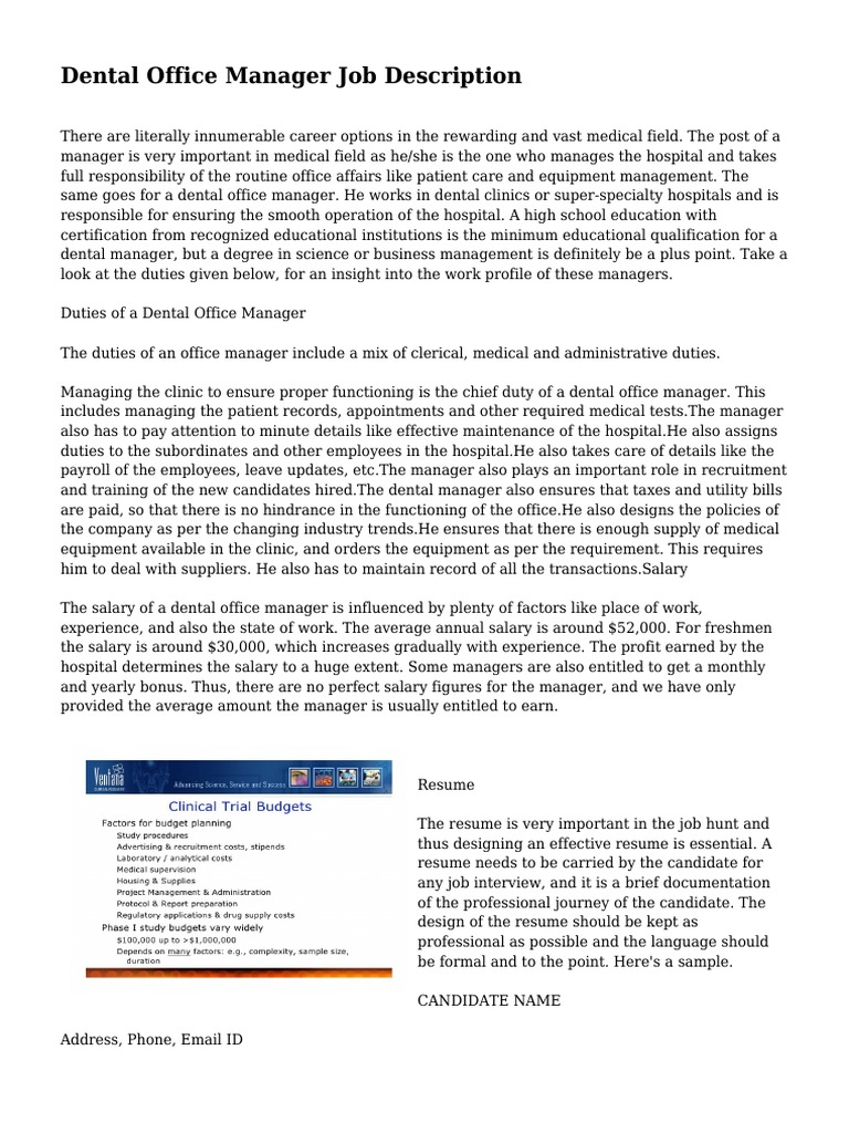 Dental Office Manager Job Description Employment Salary Free