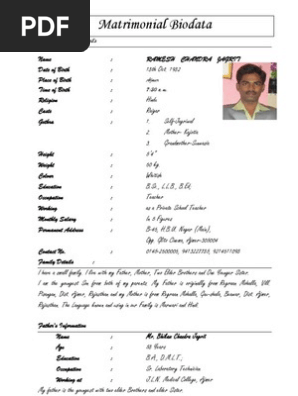 Matrimonial Resume Sample Download Biodata Format For Marriage