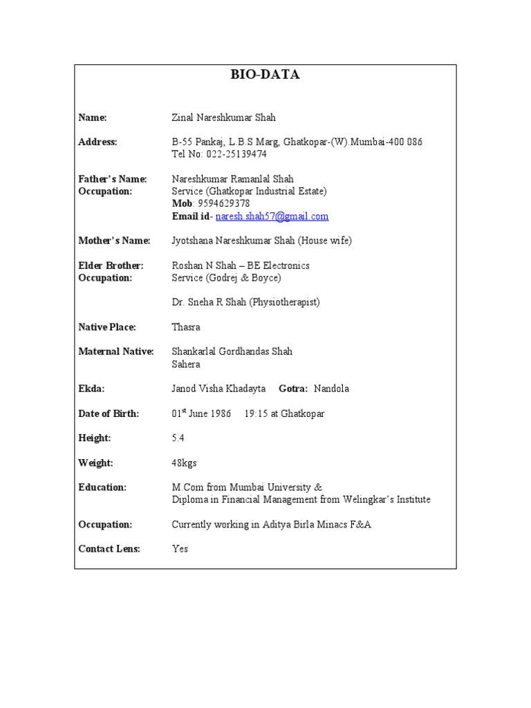 Marriage Resume Format Word File Beautiful Biodata Doc In On