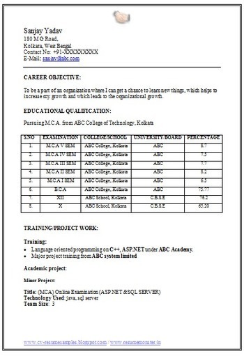 Curriculum Vitae Samples For Mca Freshers How To Write A Good