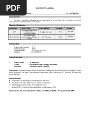 Mca Fresher Resume Format Doc 2 Download Resume Resume