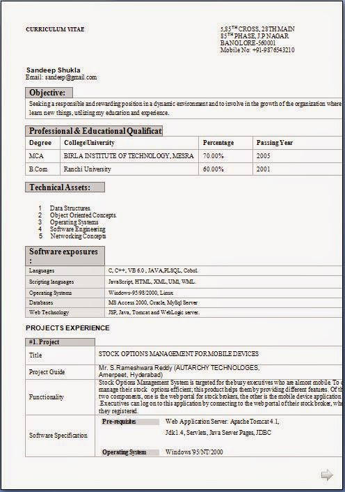 1 year experience resume format for java developer