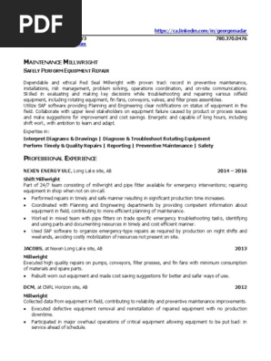 Millwright Resume Sample Pdf Ebook