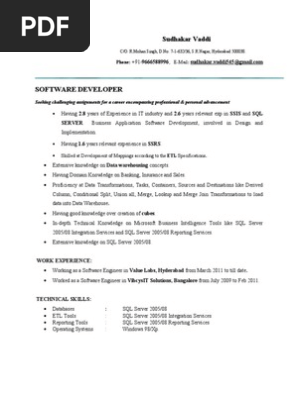 Resume Ssis Ssrs Ssas Sql Server Developer Microsoft Sql Server