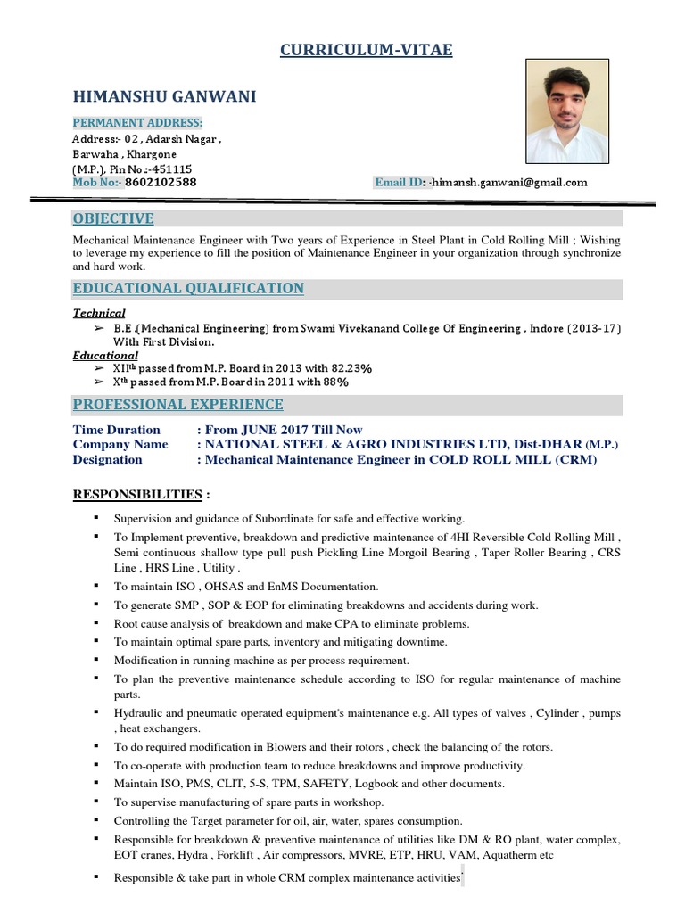 Curriculum Vitae Himanshu Ganwani Objective Engineering